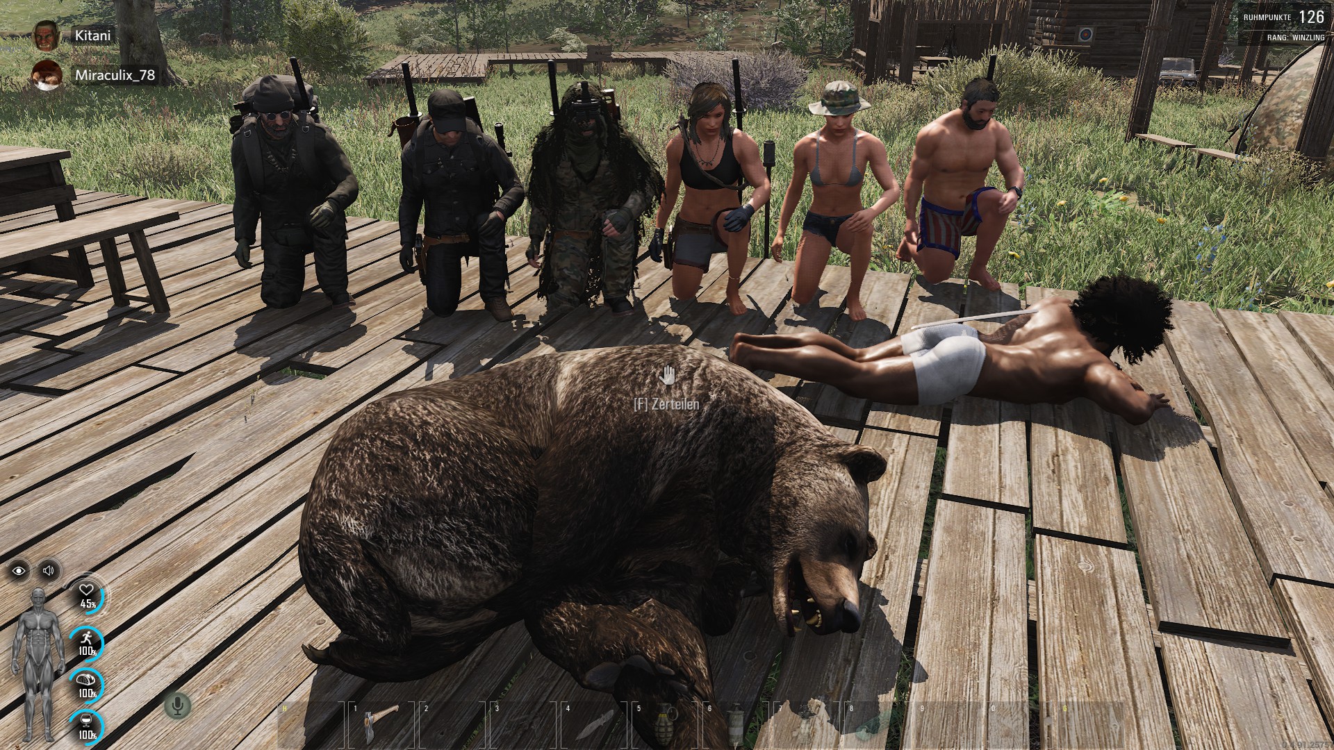 Gemeinsam konnten wir den Bär mit Fäusten und den Katanas zur Strecke bringen