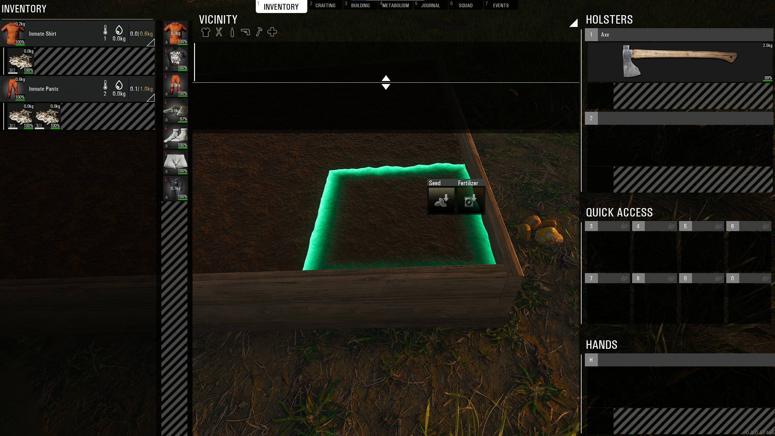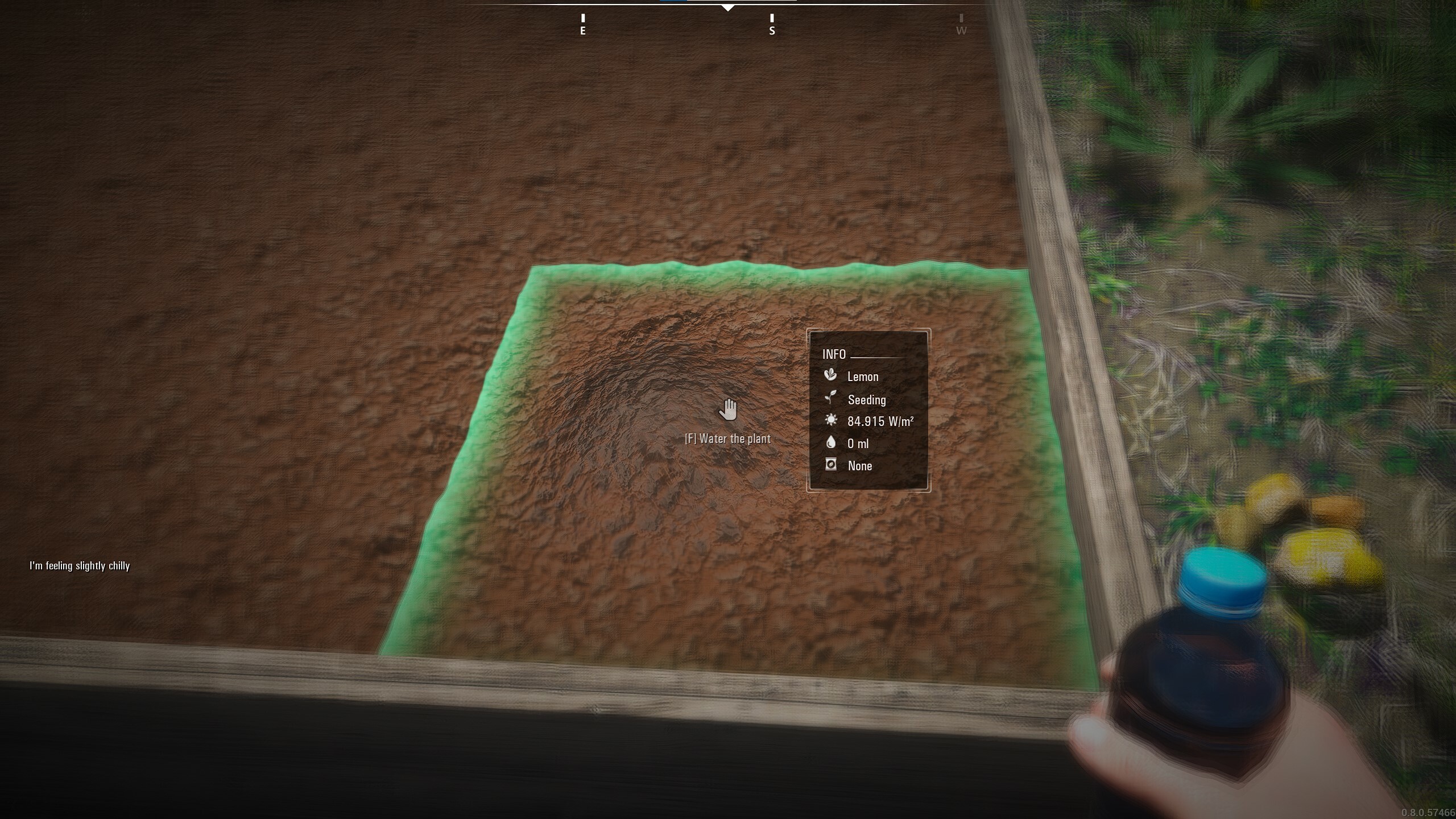 - Leere einen Behälter mit Wasser auf das Grundstück, indem ihr den Behälter in die Hand nehmt und dann F auf das Grundstück drückt, um die richtige Option zu wählen
