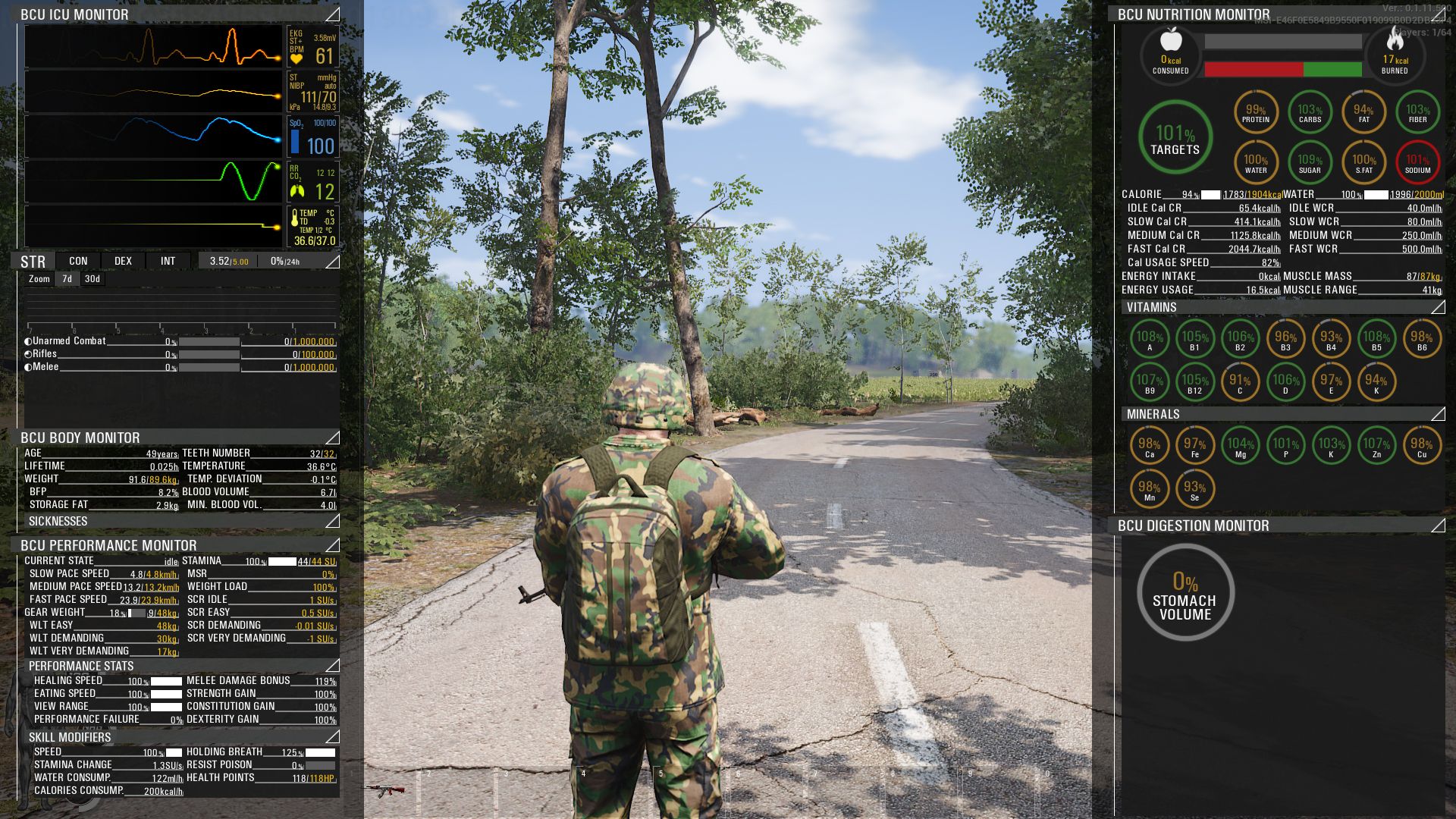 Komplexe Simulation: SCUM nutzt Dutzende komplexer Systeme, die es dem Spieler ermöglichen, tief in die Steuerung seines Charakters einzutauchen. Die Spieler können (müssen) sich intensiv mit den Details des Überlebensbefassen. Dafür sorgen Systeme, die den Stoffwechsel ihres Charakters, die Trägheit während der Bewegung und sogar die Geschwindigkeit, mit der Kleidungsschichten am Körper trocknen, steuern. Der Teufel steckt im Detail...
